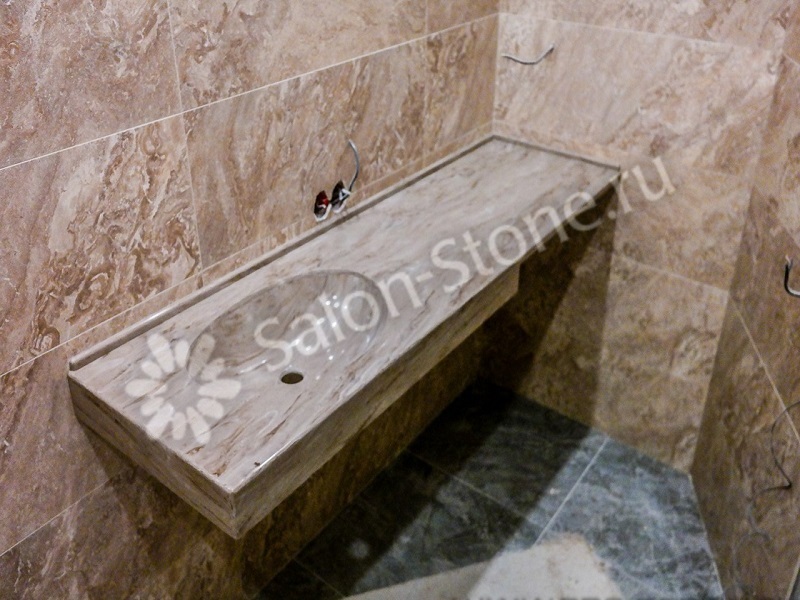 Узкая столешница с вырезом под мойку из камня